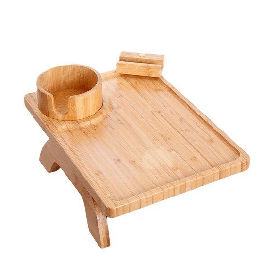 [Space Saving] - The couch arm tray maximizes your space,holding beverages,snacks,plates,glasses,remotes,and small items like cups and phones.It transforms your sofa into a convenient hub,keeping everything within reach. When not in use, it can be folded and stored under cabinets, drawers,or sofas.